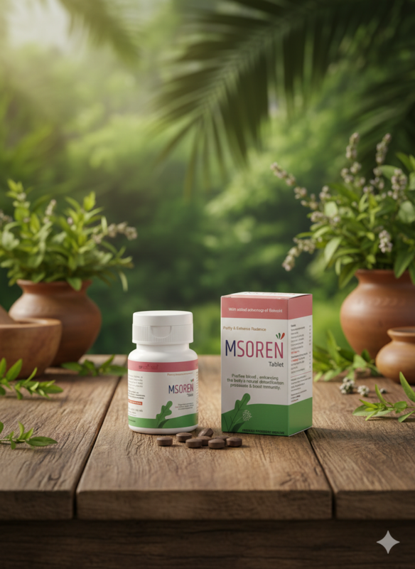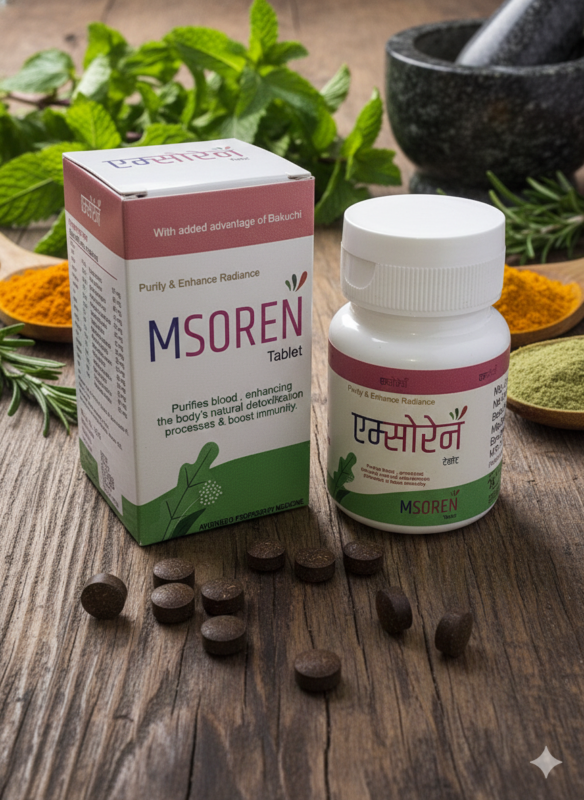 - MSOREN combines key ingredients like Khadir and Bakuchi within the same single tablet formulation, which are often found in separate or different formulations in competitor lines. This offers a powerful, consolidated treatment approach for various skin disorders.